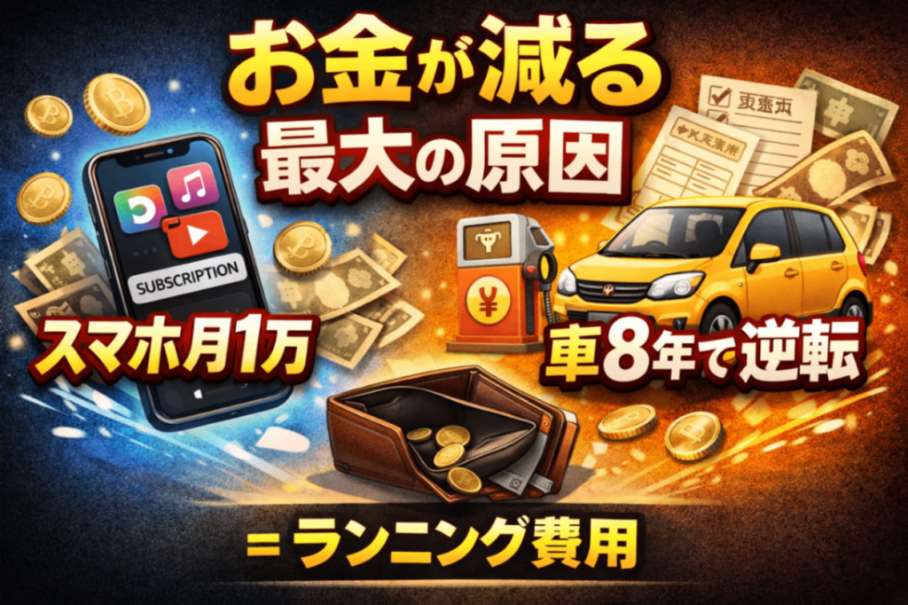 こんにちは、Rikuです。 「特別ムダ遣いしていないのに、お金が残らない」そんな感覚、ありませんか? 実は多くの家庭で、お金が減る最大の原因は“高い買い物”ではありません。 原因は、無意識に払い続けているランニング費用(維持費)です。 何かを買うと... -
